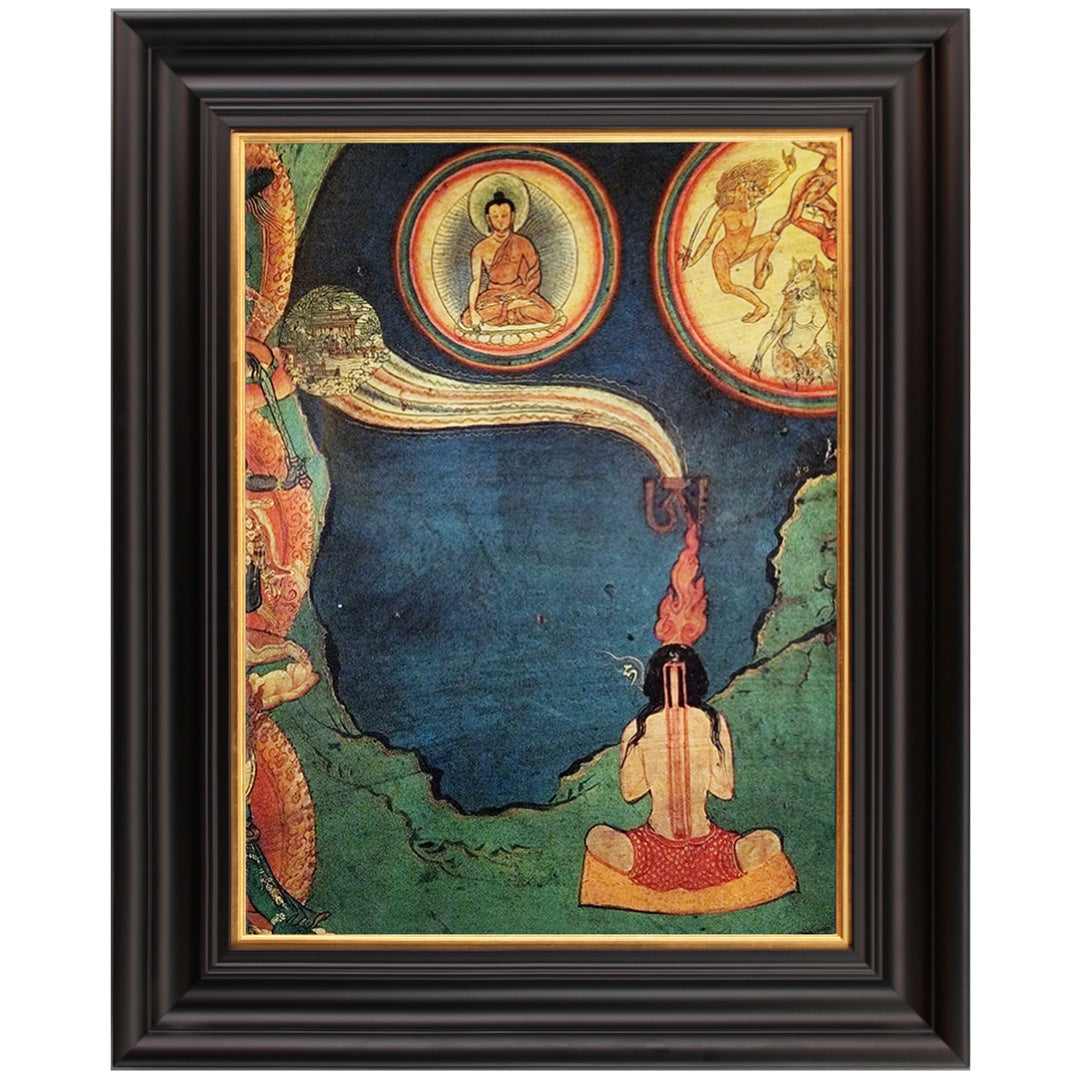 A fine art print of an llustration of the yogic practice of Tummo from an ancient Tibetan edition, 10-12th centuries CE, probably of the sage Milarepa. Printed on Hahnemühle Photo Rag 308gsm (smooth matt finish) or equivalent museum quality paper.